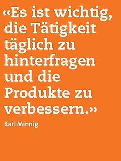 Karl Minnig: Es ist wichtig, die Tätigkeit laufend zu hinterfragen und die Produkte zu verbessern. Die Qualität zu garantieren ist eine tägliche Herausforderung! 2011 haben Sie Ihren neuen Betrieb in Bubikon in Betrieb genommen.