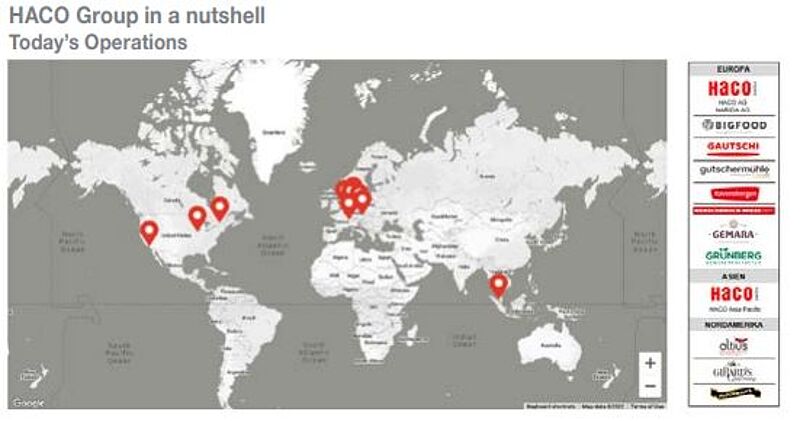 Die HACO AG ist ein integraler Bestandteil der HACO-Gruppe und zählt mit zu den «Herzstücken» der Gruppe, nicht zuletzt auch historisch bedingt, da schlussendlich die Gruppe aus der HACO AG entstanden ist. Die verschiedenen Gesellschaften der Gruppe arbeiten eng zusammen, um Markt- und Kundenbedürfnisse im Interesse der Kunden und Konsumenten bestmöglich abzudecken. So vertreibt der Bereich Food Service Schweiz beispielsweise auch Produkte der Schwesterfirmen Gautschi, Merschbrock-Wiese und Bigfood und kann so unseren Schweizer Kunden eine grössere Sortimentsbreite und folglich Convenience-Lösungen anbieten.