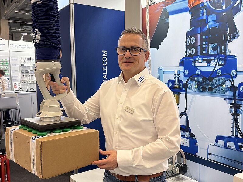 Auf der Empack in Bern präsentierte Roland Bühler die neuesten Lösungen von Schmalz GmbH in Nürensdorf – mit klarem Fokus auf Effizienz, Ergonomie und flexible Automatisierung.