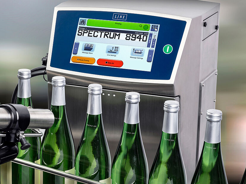 Linx 8940 Spectrum kennzeichnet Weinflaschen ©Bluhm Systeme GmbH Schweiz
