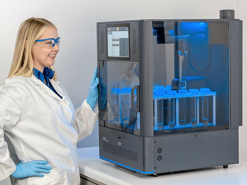 Im Blade reichen typischerweise 5 Minuten inklusive Abkühlung für einen Aufschluss. Dann kann die Probe vermessen werden.