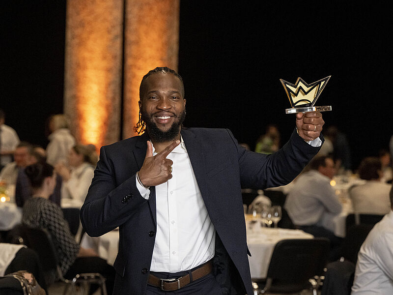 Nebst dem Hauptgang, dem Dessert und dem reichhaltigen Käsebuffet wartete am regio-tag ein weiteres Highlight auf die Gäste: Die Vergabe der Krone in der Kategorie Produktion. Von den Titelanwärtern überzeugte Babatunde Adewale am meisten. Hocherfreut nahm er die Krone für die Schafmilchkäserei Koster GmbH in Wald entgegen. «Ich habe zu meinen Kindern immer gesagt, wenn du etwas machst, dann mach es richtig oder gar nicht», sagte Babatunde Adewale auf der Bühne. Der Gewinn der Krone sei eine Bestätigung für diesen Leitsatz – denn mit all seinem Engagement für die Schafmilchkäserei Koster habe er das Richtige gemacht und es sei schön, dies seinen Kindern zeigen zu können.