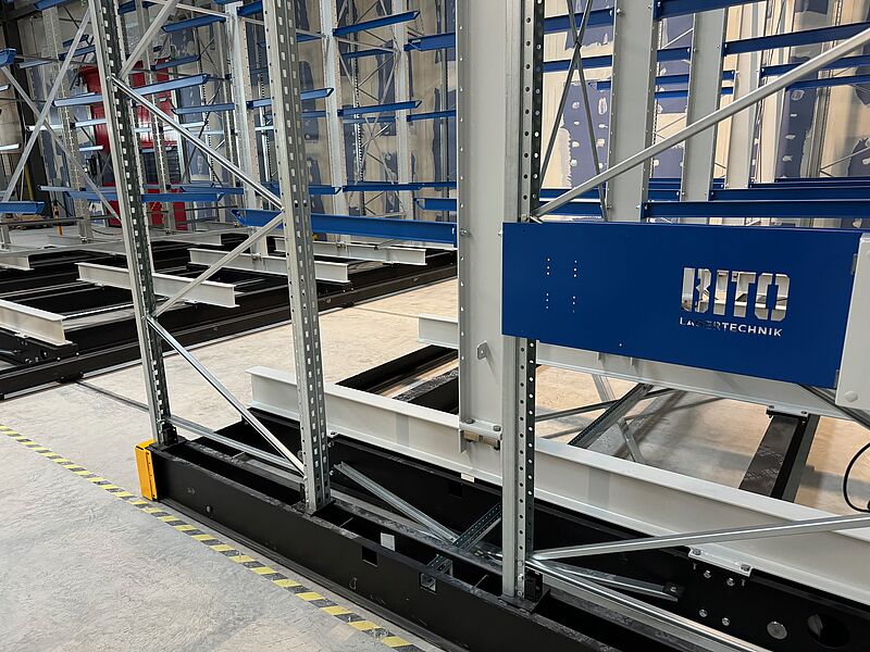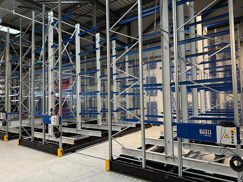 - 17 mobile Kragarmregalanlagen für die Lagerung von Fensterbauteilen