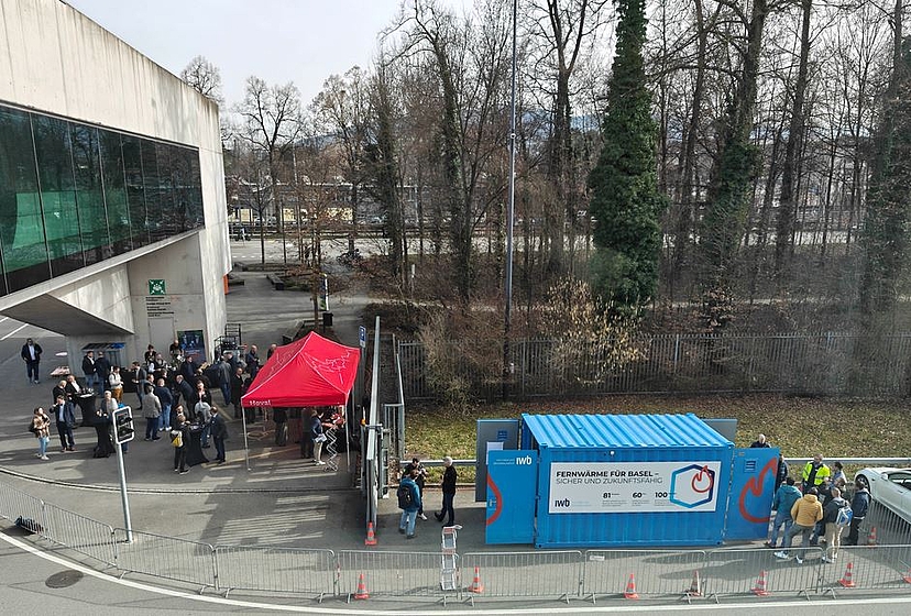 Ergänzend zeigten Beat Ruckli und Fabio Schild von den Industrielle Werke Basel, wie mobile Heizzentralen in einem Container praktisch eingesetzt werden. Der Container wird direkt an das Primärnetz angeschlossen und liefert Wärme flexibel bei Netzerweiterungen oder Wärmenetzsanierungen. Vorteile sind emissionsfreier Betrieb ohne Abgase und Lärm, reduzierte Kosten dank vorhandener Anlage sowie Überwachung über Leitsysteme oder Apps. Die Containerlösung konnte von den Teilnehmenden vor Ort besichtigt werden, sodass ein direkter Einblick in die praktische Umsetzung möglich war.